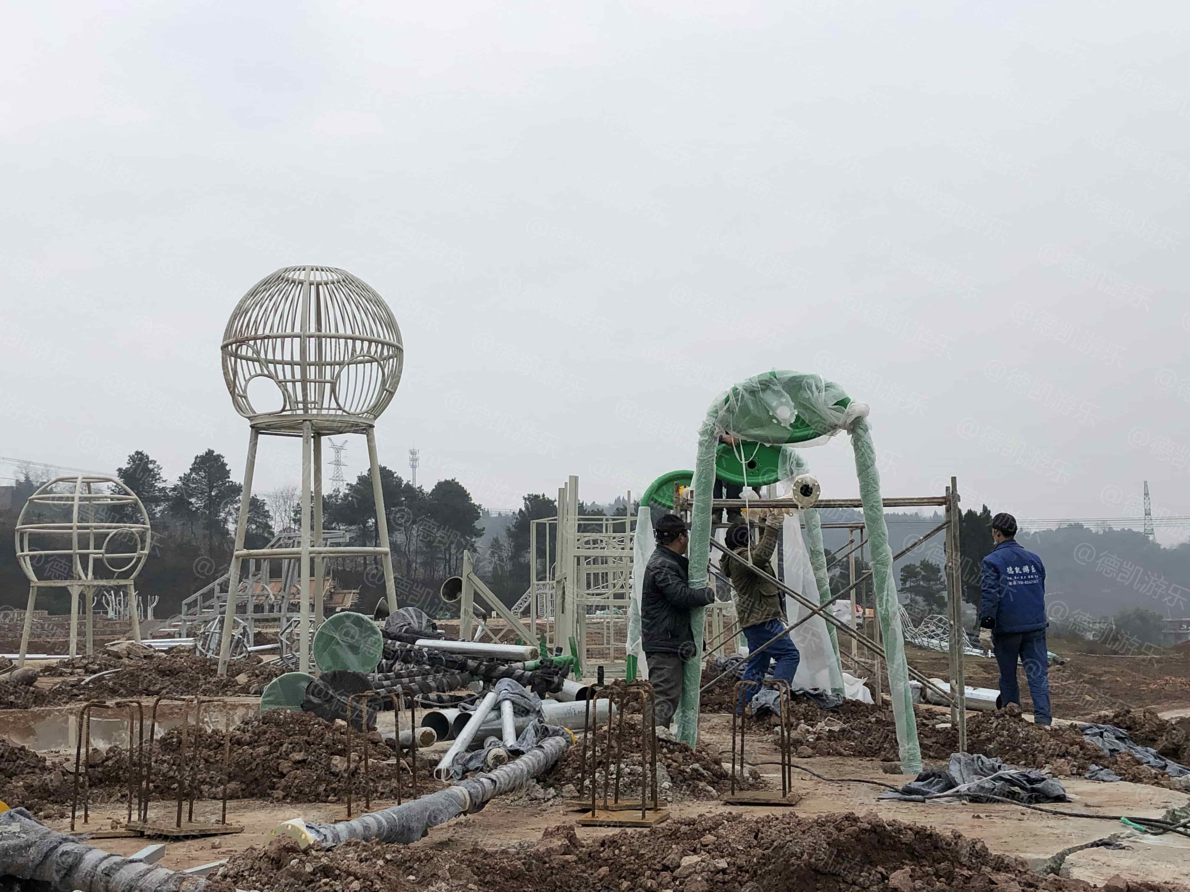 年關(guān)將至,位于重慶景區(qū)公園游樂設(shè)施有序安裝中。